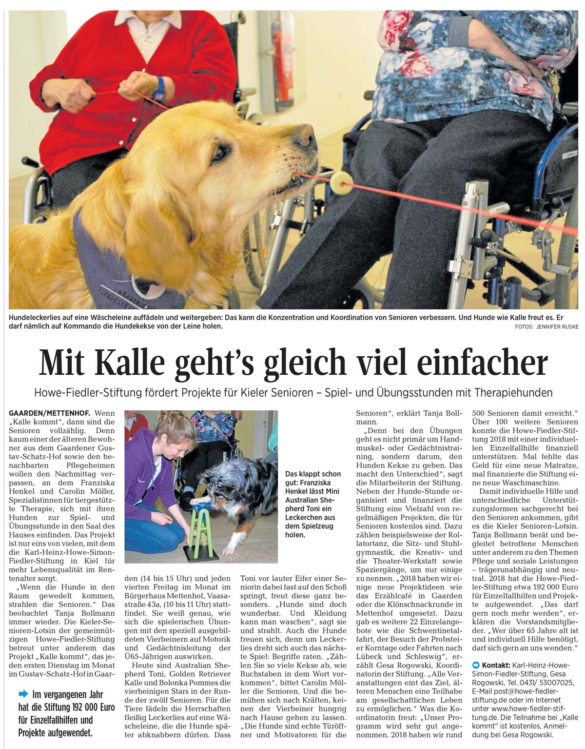 Ein Bericht über unser erfolgreiches Projekt "Kalle kommt!" und über unsere Stiftung allgemein in den "Kieler Nachrichten" vom 16.04.2019