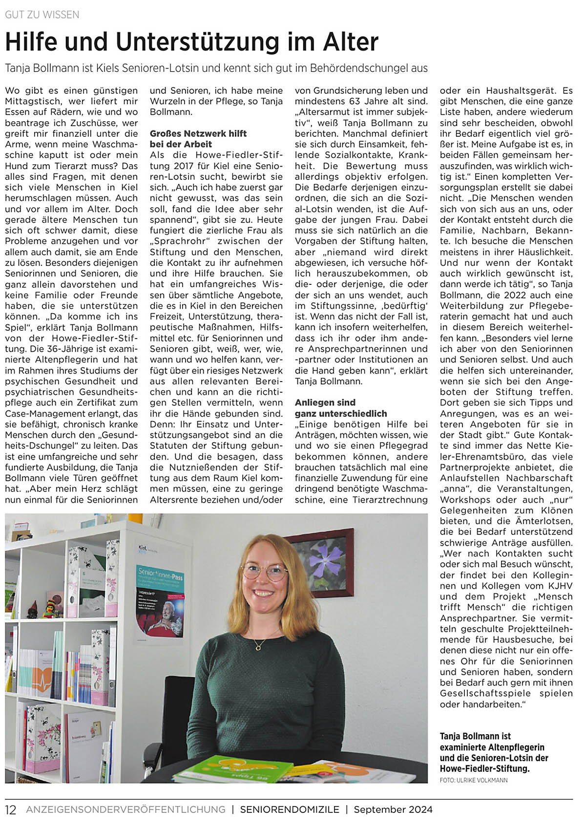 Unsere Mitarbeiterin Tanja Bollmann ist Kiels Senioren-Lotsin. Hier gibt es einen Einblick in ihre Arbeit und der Artikel stellt sie vor: